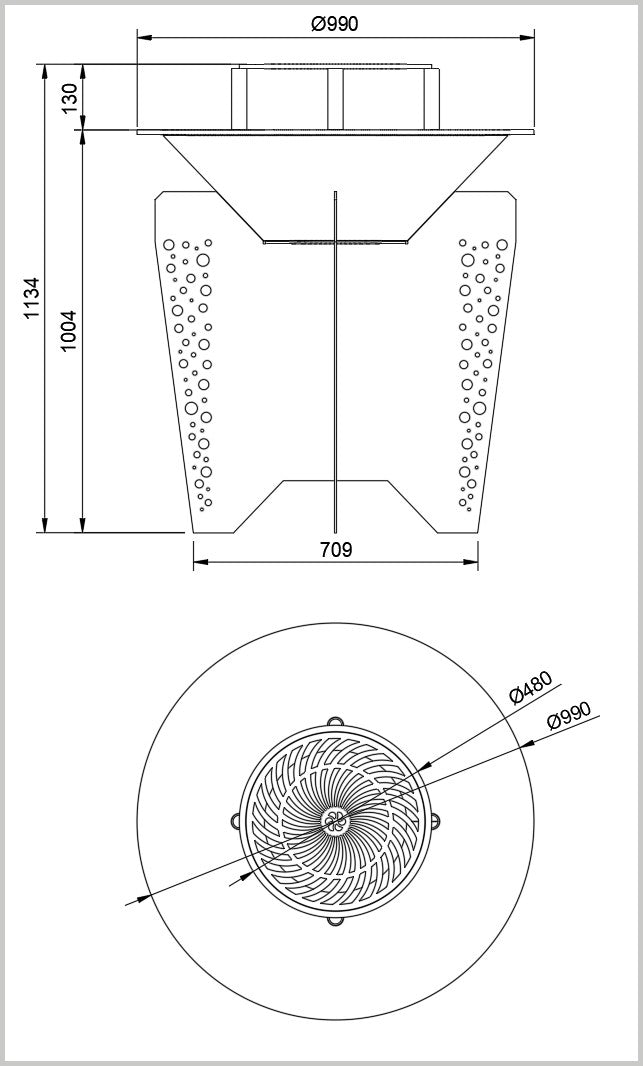 * la grille de cuisson en acier Ø480mm ép. 12mm